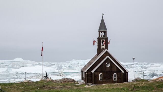 Iglesia Sionista de Ilulissat en Groenlandia. Es una de las iglesias más antiguas de Groenlandia y uno de sus principales bienes históricos y culturales.